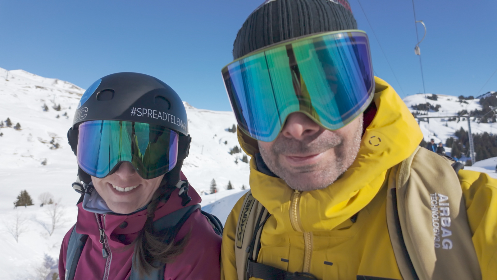 Maya prend de plus en plus confiance grâce à ses nouveaux Reliance 92 de chez Armada qui lui correspondent à merveille. Elle enchaîne les virages avec aisance, le sourire aux lèvres – une fierté bien visible. De son côté, Marc est ravi de ses nouvelles caméras, qu’il commence à bien maîtriser. Il capture avec passion chaque mouvement, chaque émotion, immortalisant ainsi ces moments de complicité.