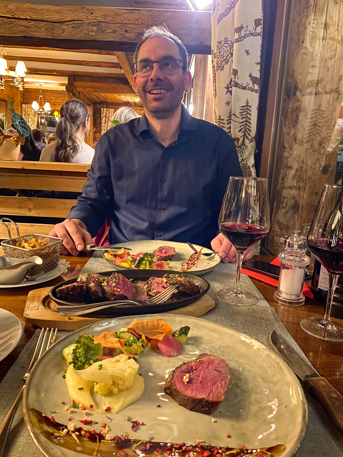 Le samedi est une journée magique. Nous explorons le domaine des 4 Vallées, enchaînant les virages et capturant les meilleurs instants. L’ambiance est légère, parfois même un peu trop : un excès de confiance (merci à mes skis !) et hop, une petite chute – rien de grave, juste de quoi bien rigoler et me rappeler à l’ordre. Quelques pauses bien méritées nous permettent de trinquer et de savourer ces précieux moments, sans se presser, juste pour le plaisir d’être deux.